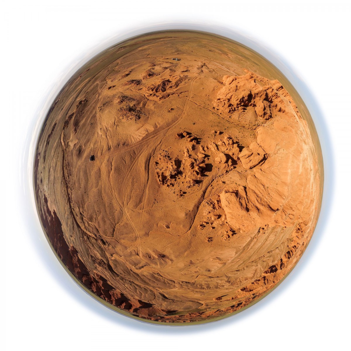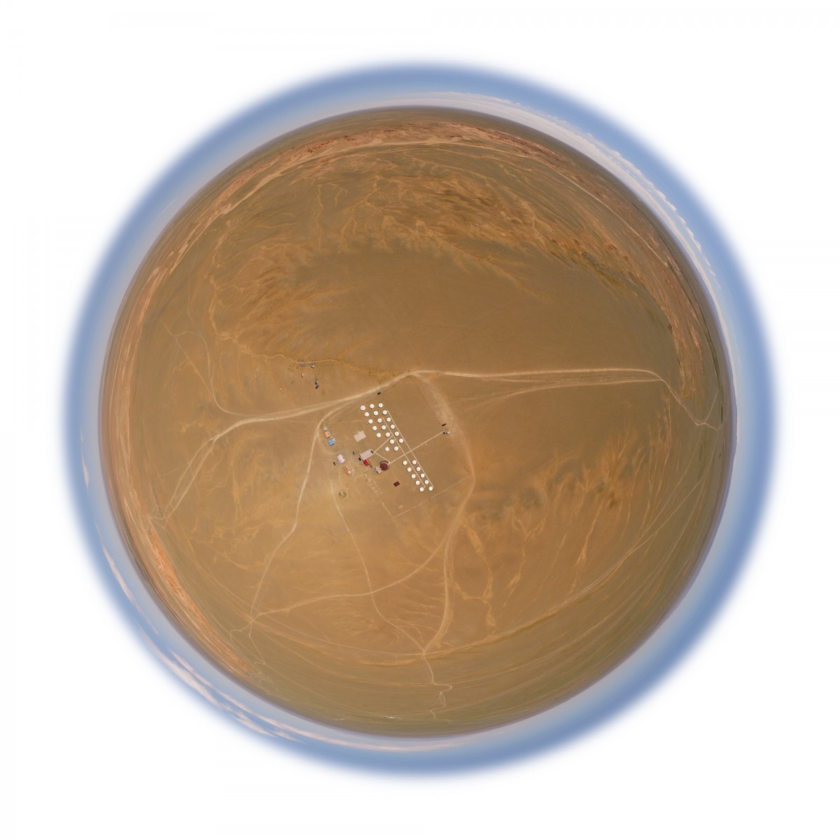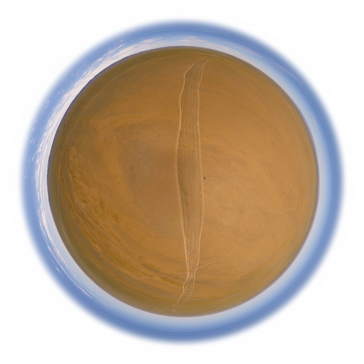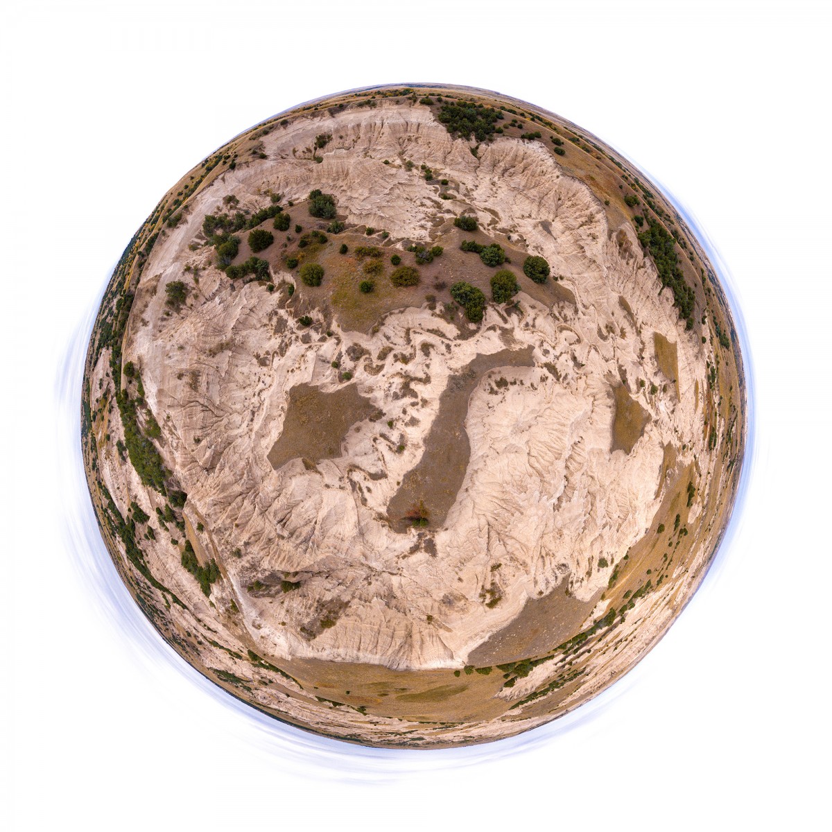 Il y a plus de quinze ans, bien avant l’utilisation répandue du drone, Sébastien Devrient créait déjà des Bulles de Terre, en hélicoptère, à partir de photographies aériennes. Puis le drone est entré en scène, simplifiant la capture de l’image, mais sans modifier la démarche créative : le cadrage précis d’un paysage, un centre défini par le choix d’un point au sol et de l’altitude exacte à laquelle le paysage se transforme en bulle.