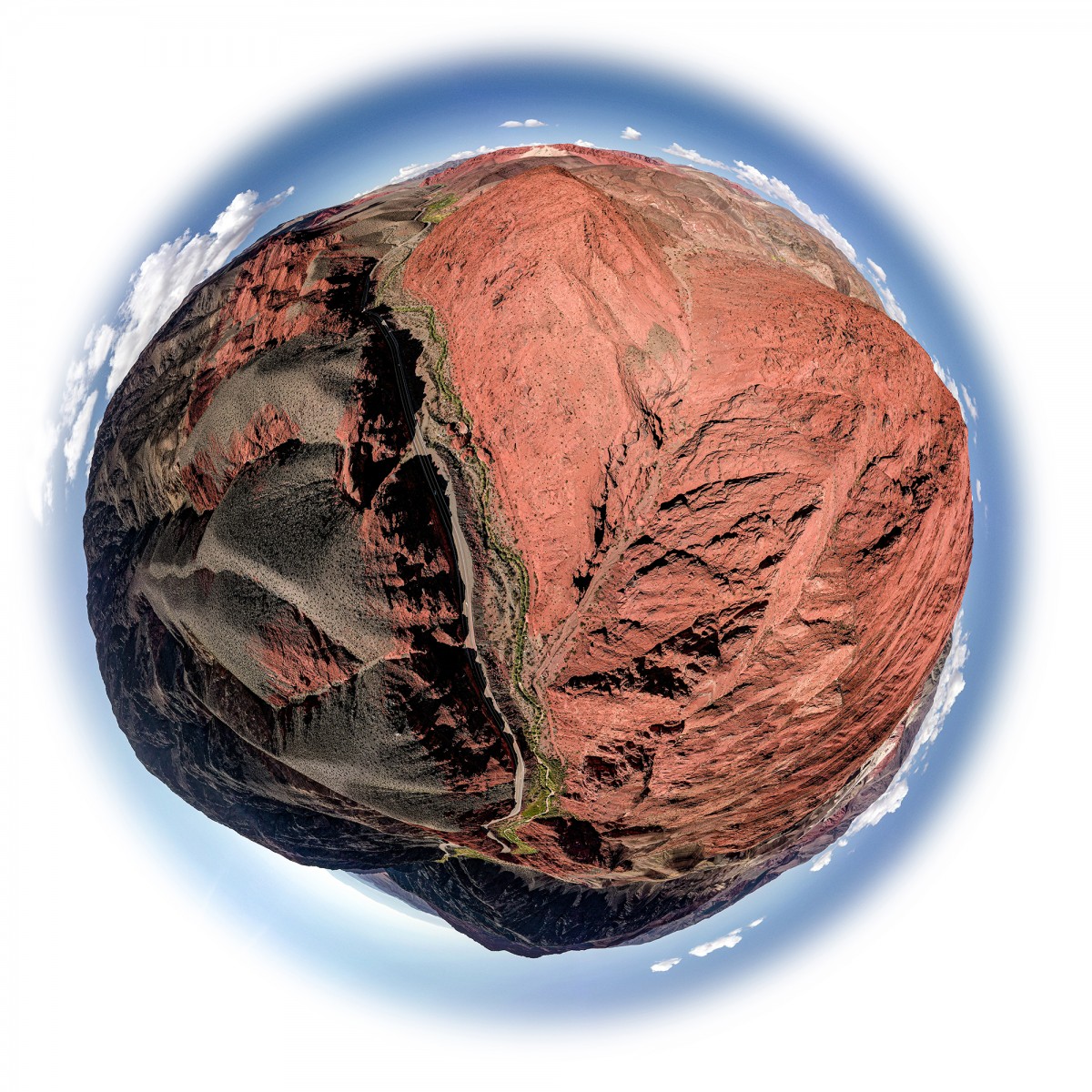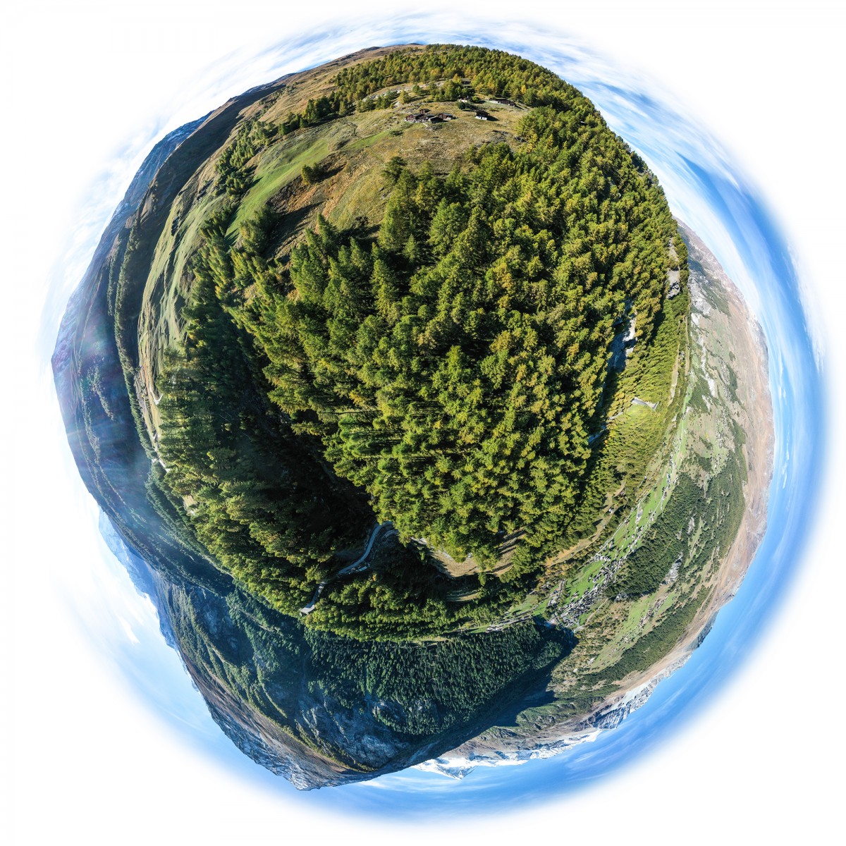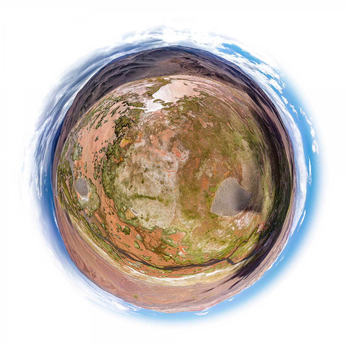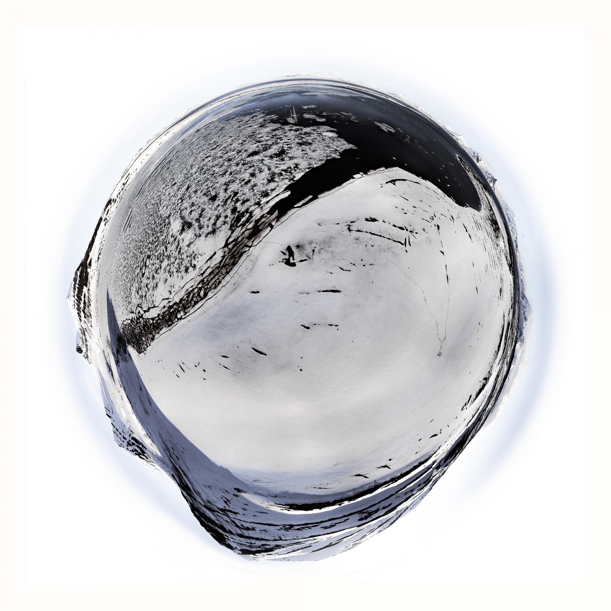 Il y a plus de quinze ans, bien avant l’utilisation répandue du drone, Sébastien Devrient créait déjà des Bulles de Terre, en hélicoptère, à partir de photographies aériennes. Puis le drone est entré en scène, simplifiant la capture de l’image, mais sans modifier la démarche créative : le cadrage précis d’un paysage, un centre défini par le choix d’un point au sol et de l’altitude exacte à laquelle le paysage se transforme en bulle.