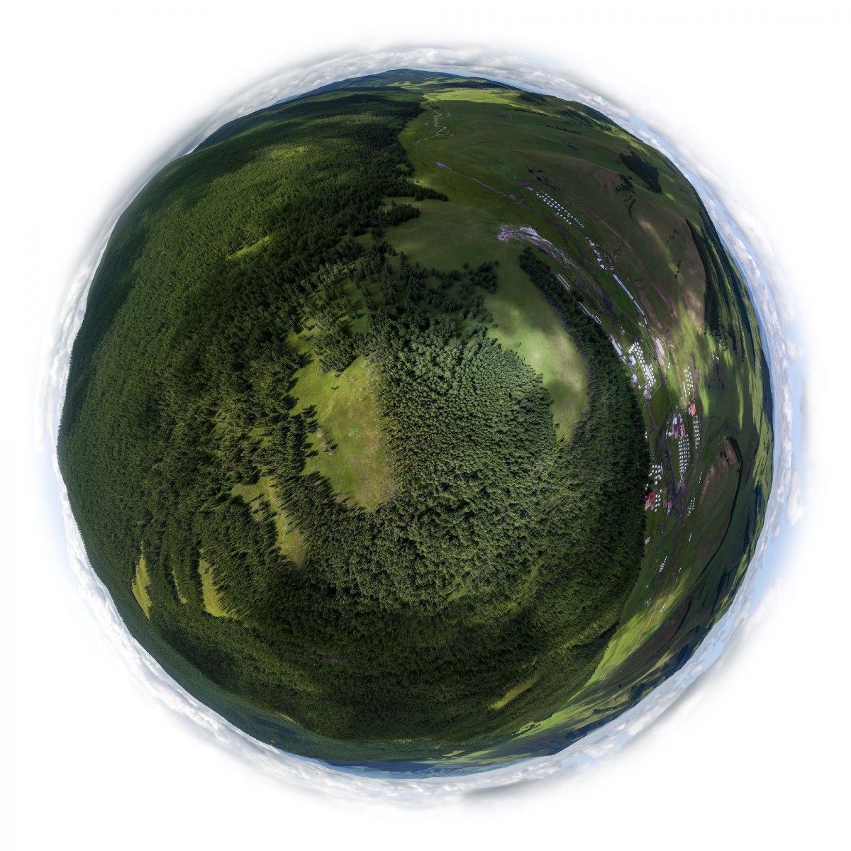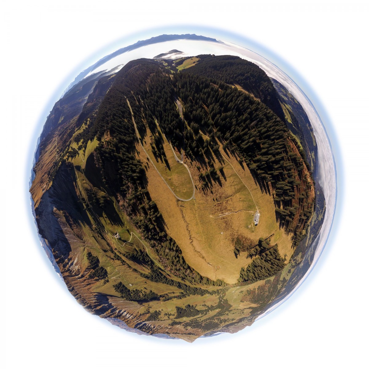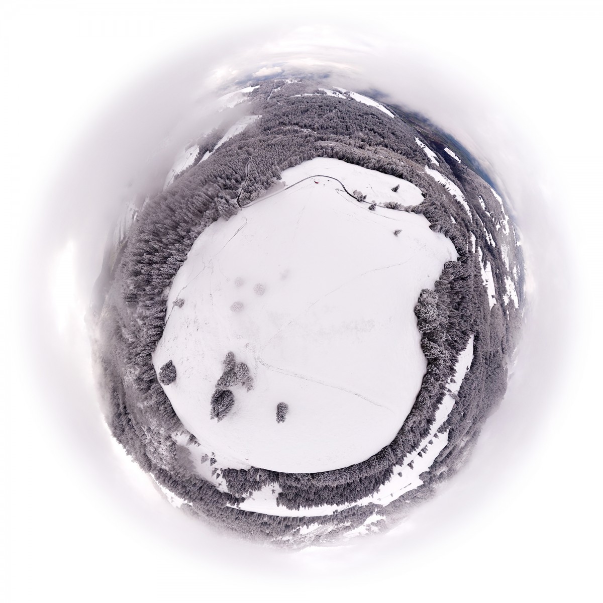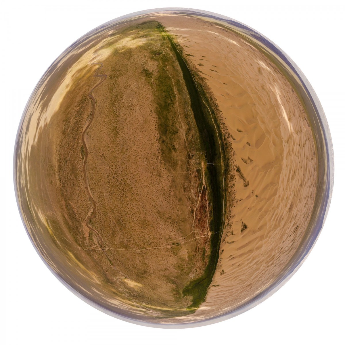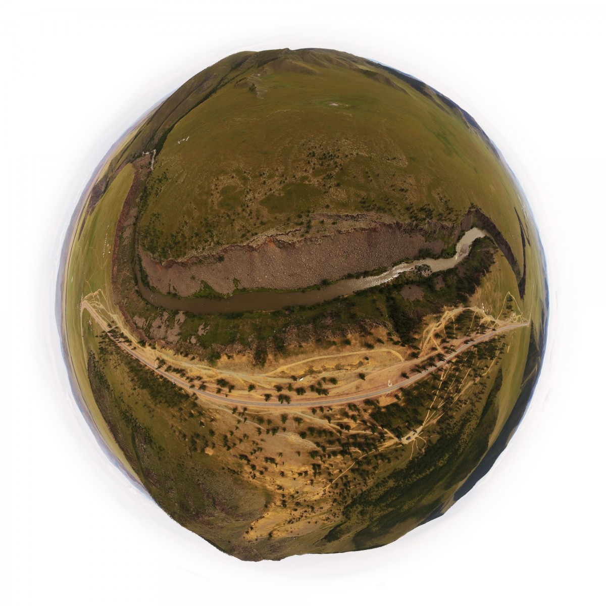 Il y a plus de quinze ans, bien avant l’utilisation répandue du drone, Sébastien Devrient créait déjà des Bulles de Terre, en hélicoptère, à partir de photographies aériennes. Puis le drone est entré en scène, simplifiant la capture de l’image, mais sans modifier la démarche créative : le cadrage précis d’un paysage, un centre défini par le choix d’un point au sol et de l’altitude exacte à laquelle le paysage se transforme en bulle.