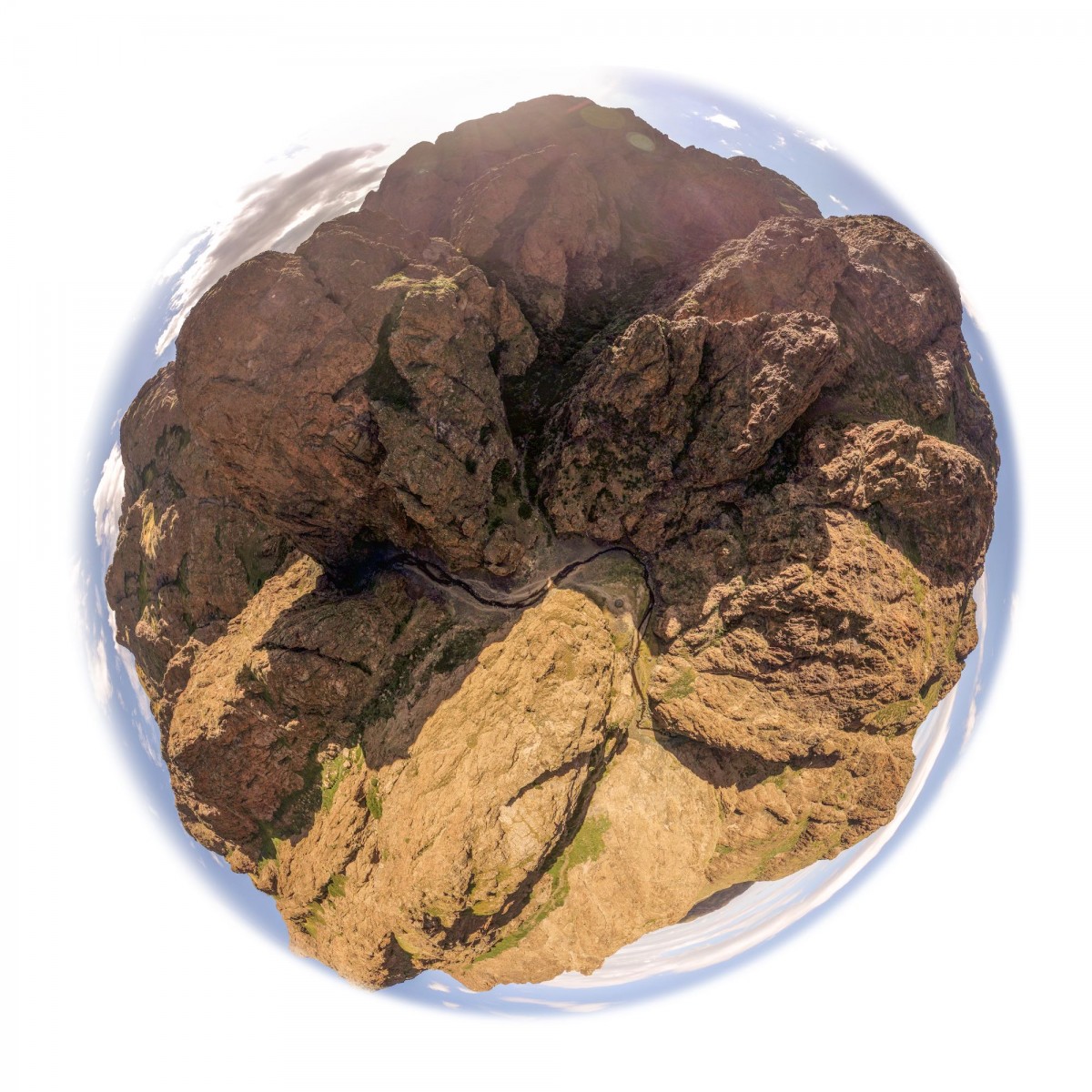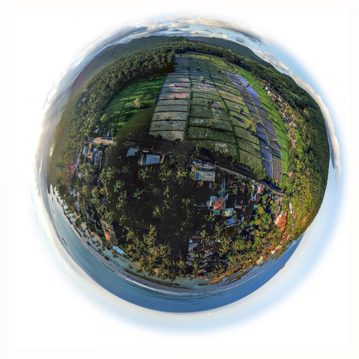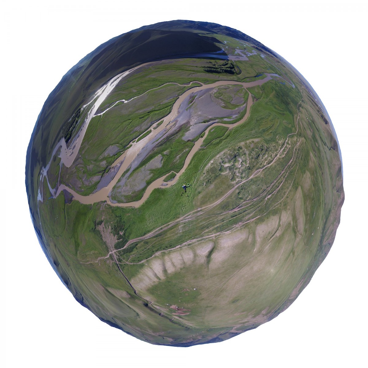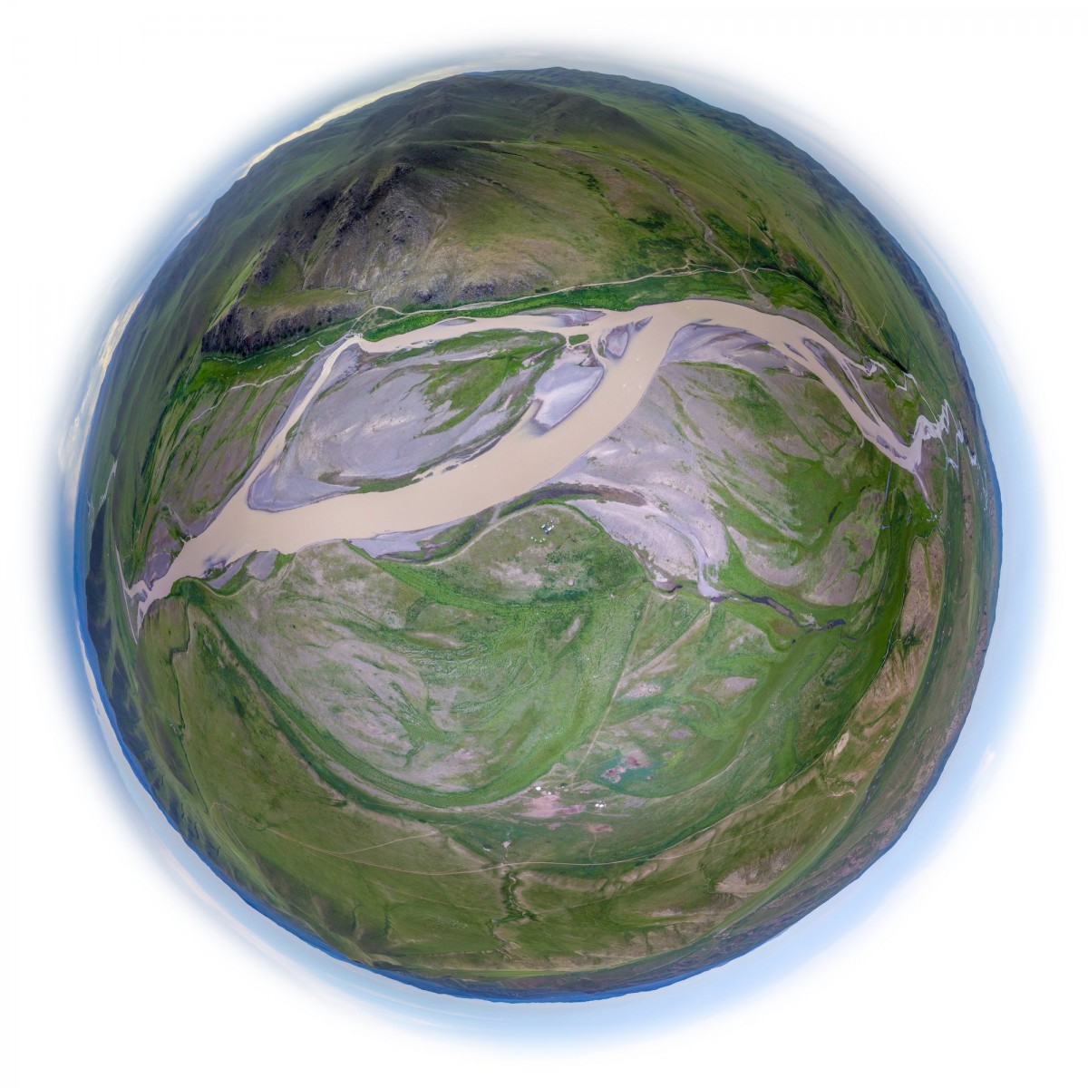 Il y a plus de quinze ans, bien avant l’utilisation répandue du drone, Sébastien Devrient créait déjà des Bulles de Terre, en hélicoptère, à partir de photographies aériennes. Puis le drone est entré en scène, simplifiant la capture de l’image, mais sans modifier la démarche créative : le cadrage précis d’un paysage, un centre défini par le choix d’un point au sol et de l’altitude exacte à laquelle le paysage se transforme en bulle.