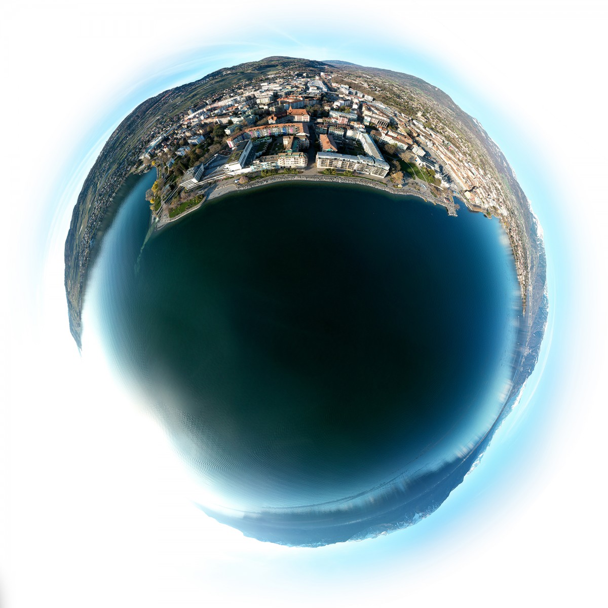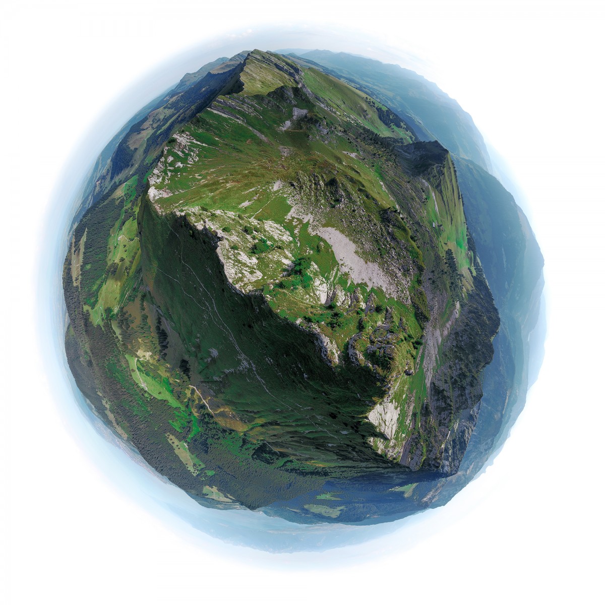 « Si on embrasse l’ensemble du paysage d’un coup d’œil, on obtient le point de vue détaillé, complet et insolite d’un lieu tel qu’il existe, mais qu’on ne peut pas voir. L’image ressemble à une planète et notre monde se transforme ainsi en une infinité d’astres potentiels, uniques, et soudainement fragiles comme des bulles de savon : des Bulles de Terre. »